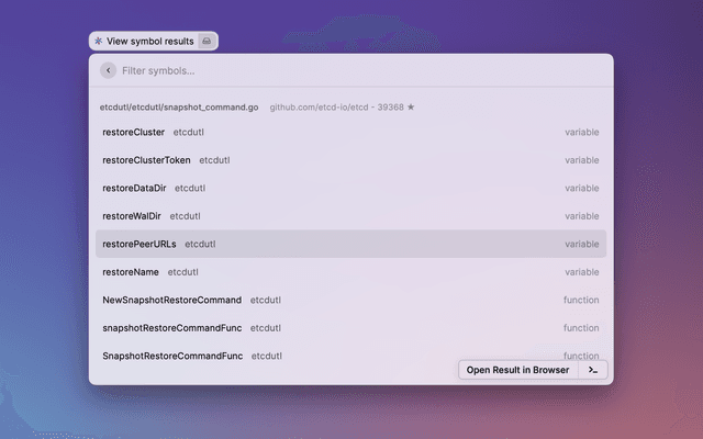 To get started, install Raycast and install the Sourcegraph extension from the Raycast extensions store.