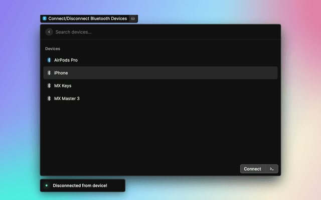 Manage bluetooth connections in Raycast