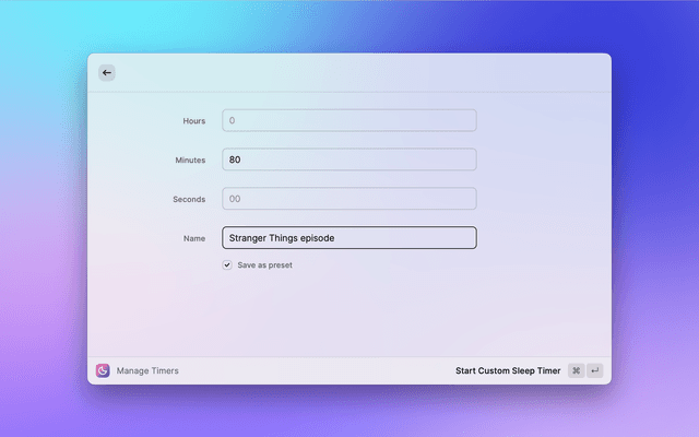 This is a lightweight extension allowing you to start and stop a single sleep timer. It works directly in Raycast, no external apps or dependencies required. Now available in the Raycast Store!