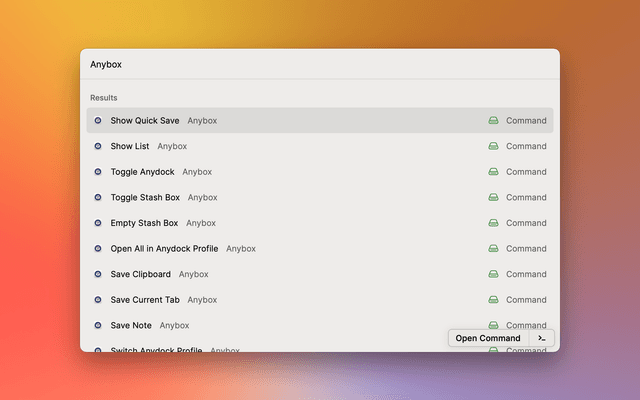 Show Quick Save, toggle Anydock, save note or do other things right in Raycast.