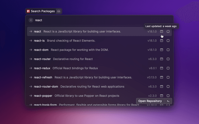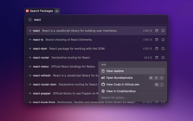Raycast extension to search for npm packages using npms.io
